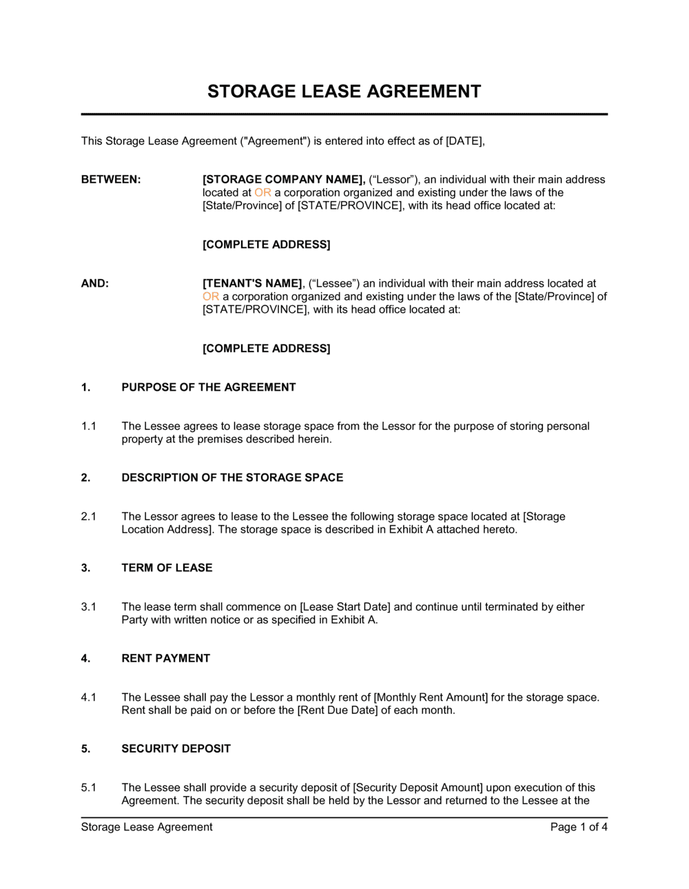 Free Storage Space Unit Lease Agreement Template PDF Word EForms