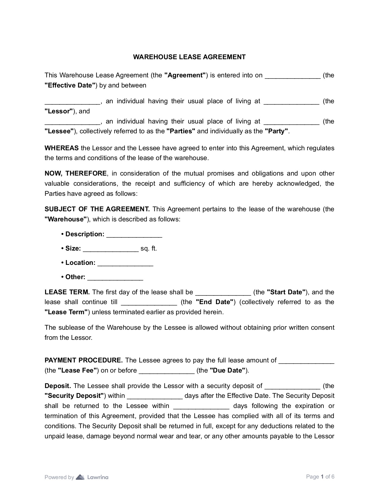 Warehouse Lease Agreement Template PDF Lawrina
