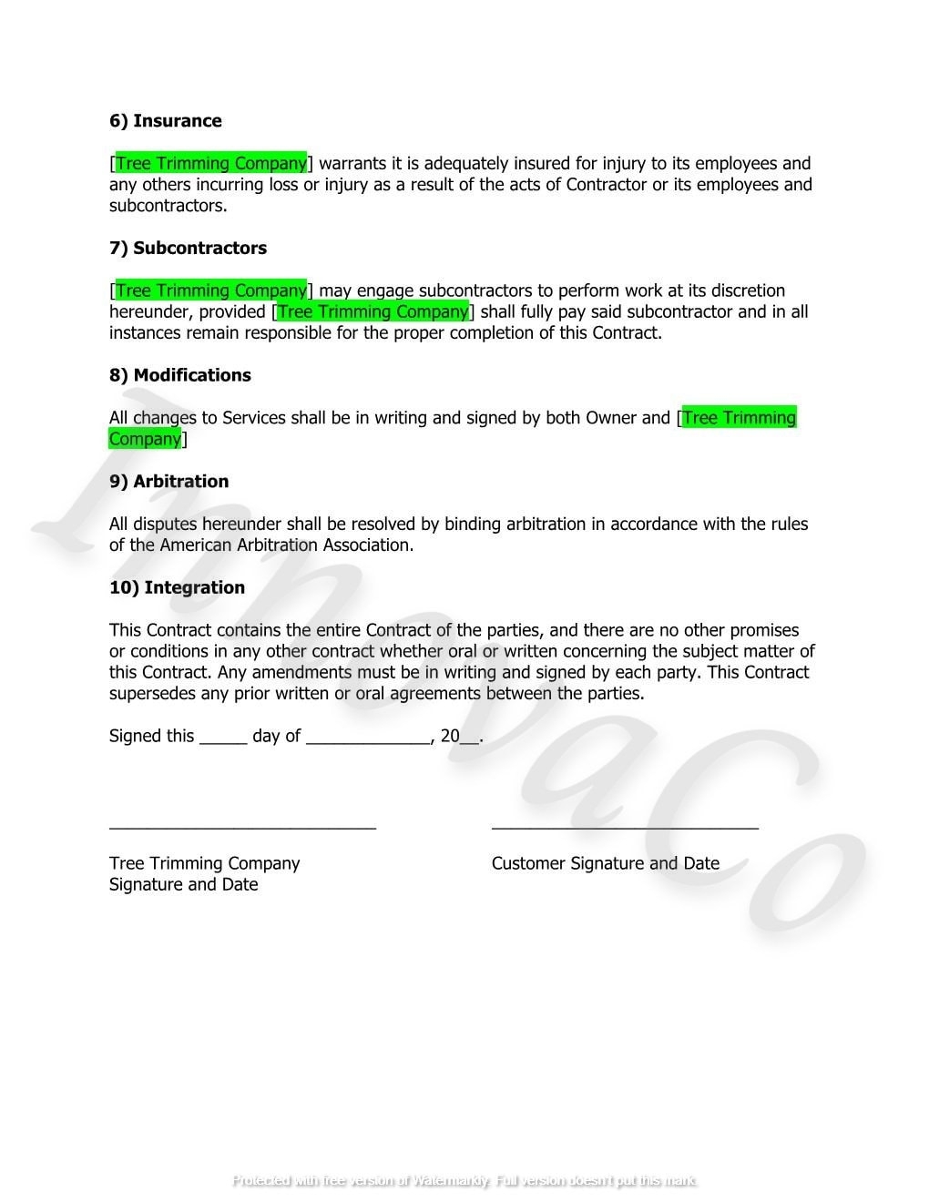 Tree Trimming Contract Template Tree Removal Contract Agreement Tree Service Contract Arborist Contract Tree Service Terms And Condition Etsy