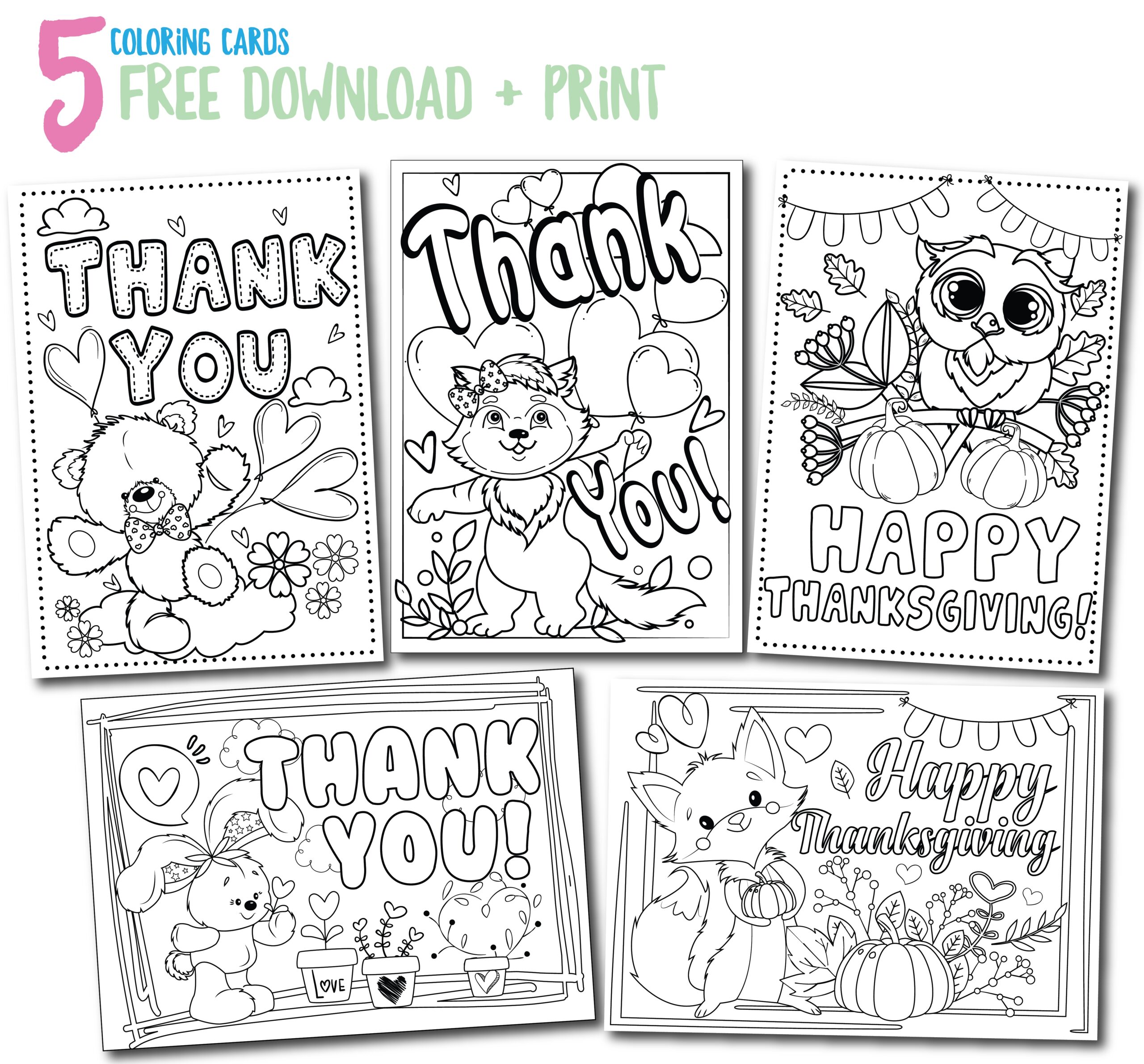 Thanksgiving Printable Coloring Thank You Cards 5 Pack Thank You Me
