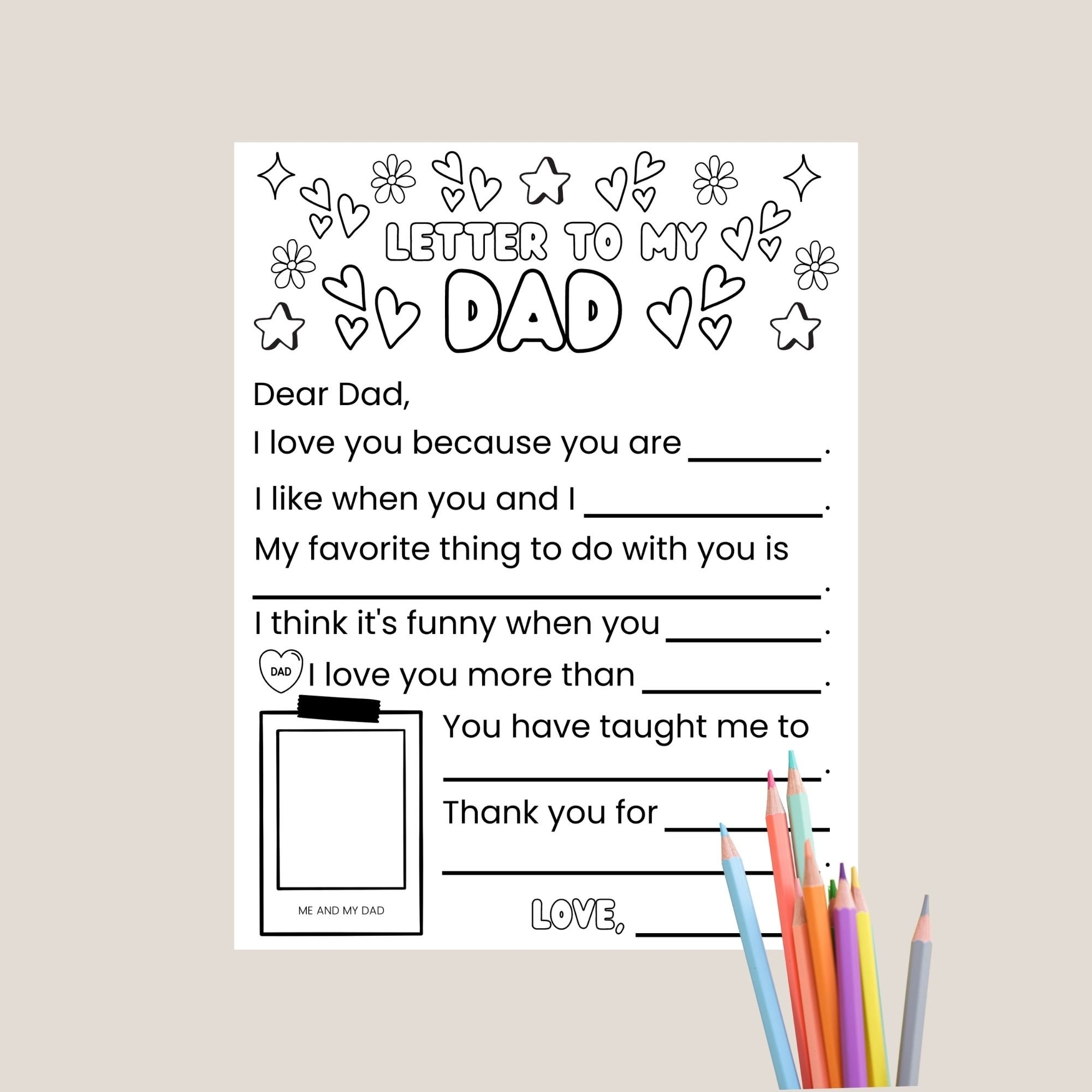 Letter To My Dad Coloring Fill In The Blank Sheet For Kids Instant Download Etsy