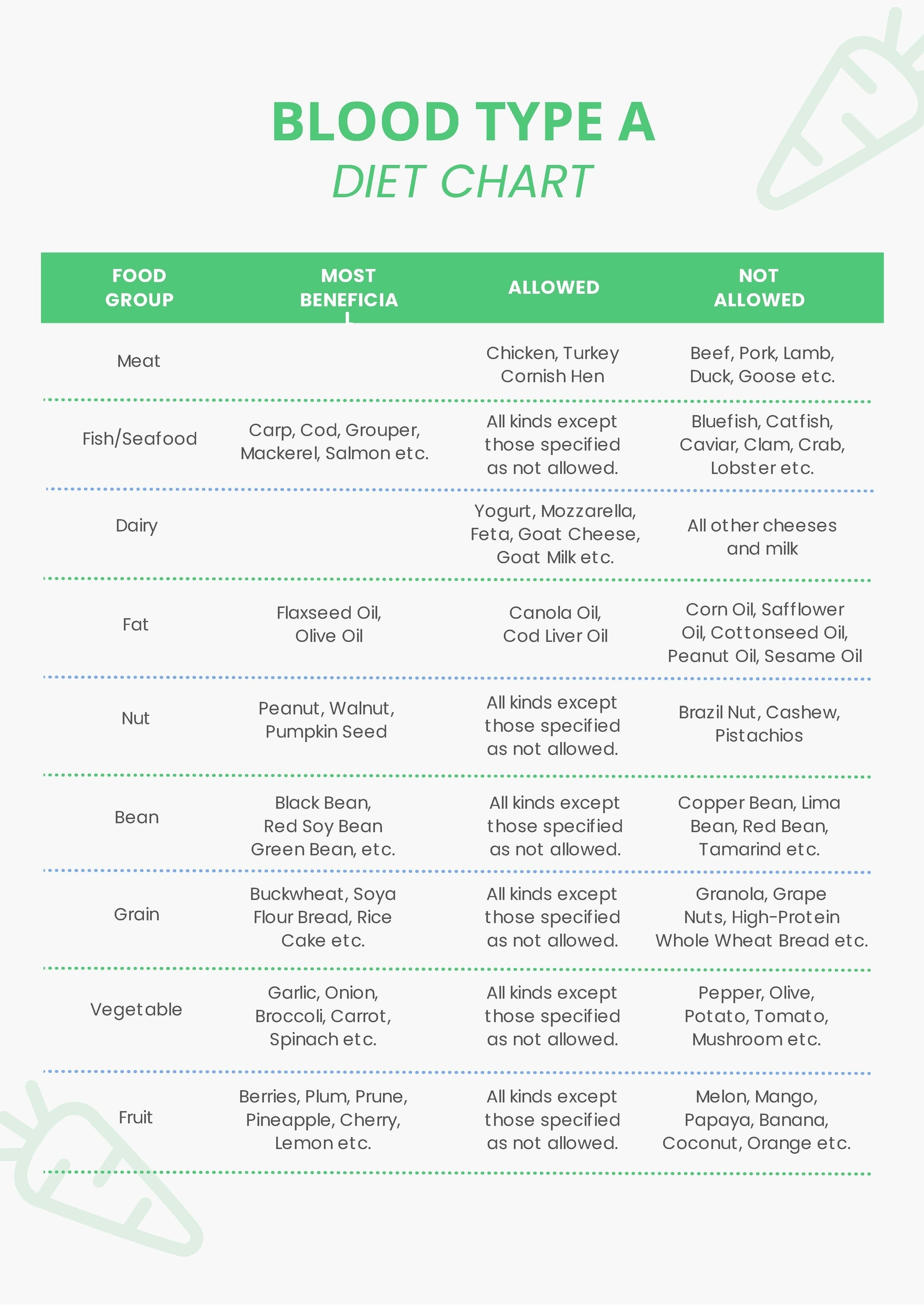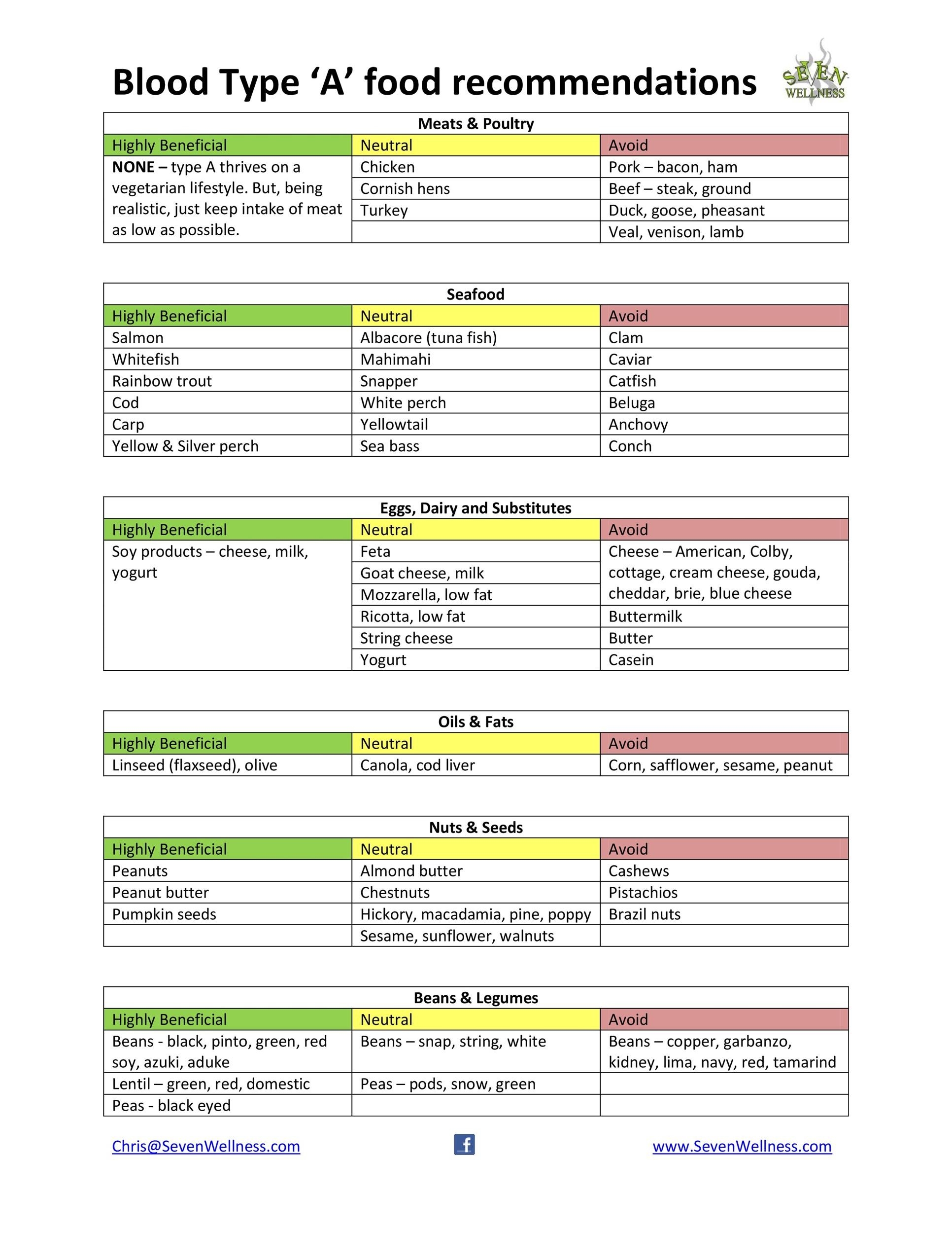 Blood Type A Diet Chart In PDF Download Template