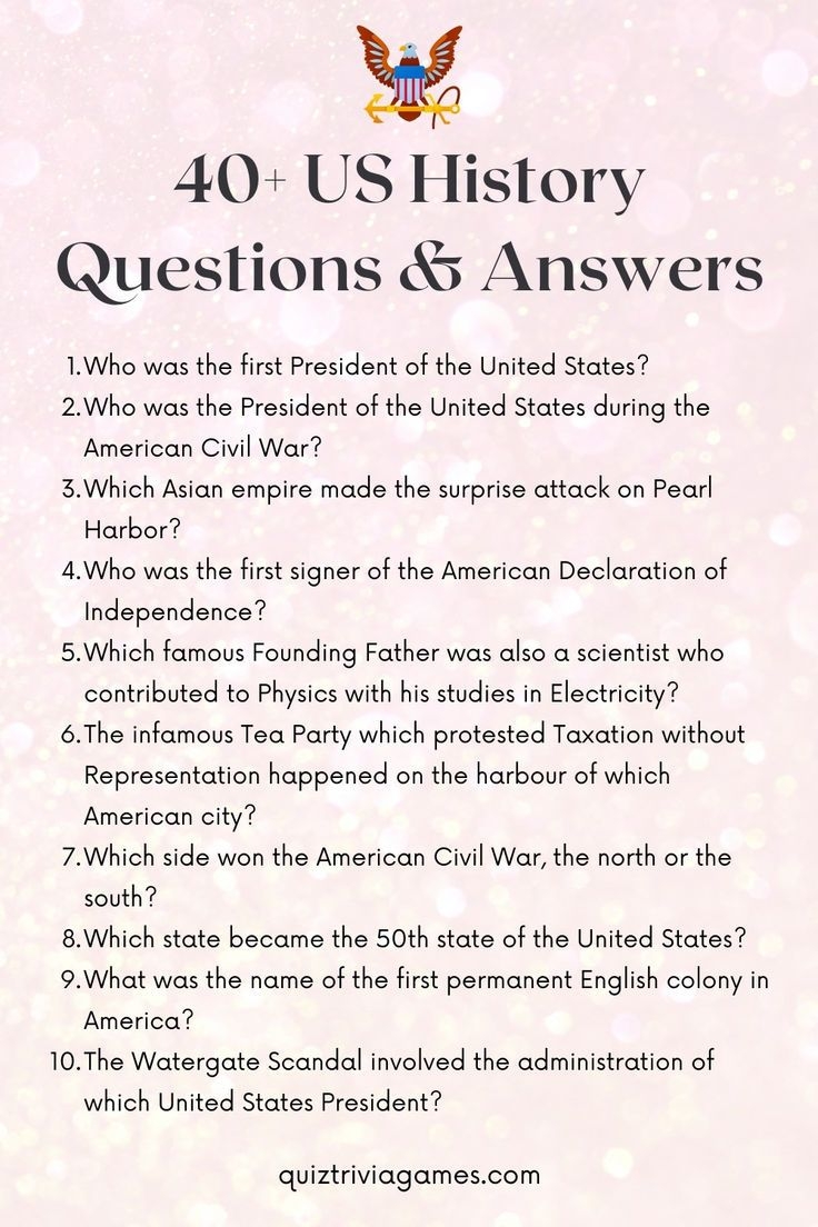 From presidential facts to state capitals, these questions cover a wide range of topics related to the United States. So grab a pen and paper, gather your friends or family, and get ready to put your knowledge to the test!