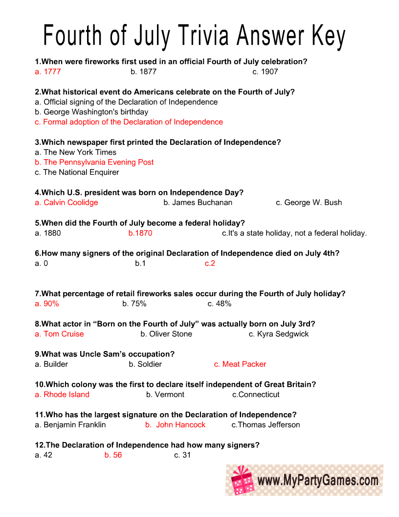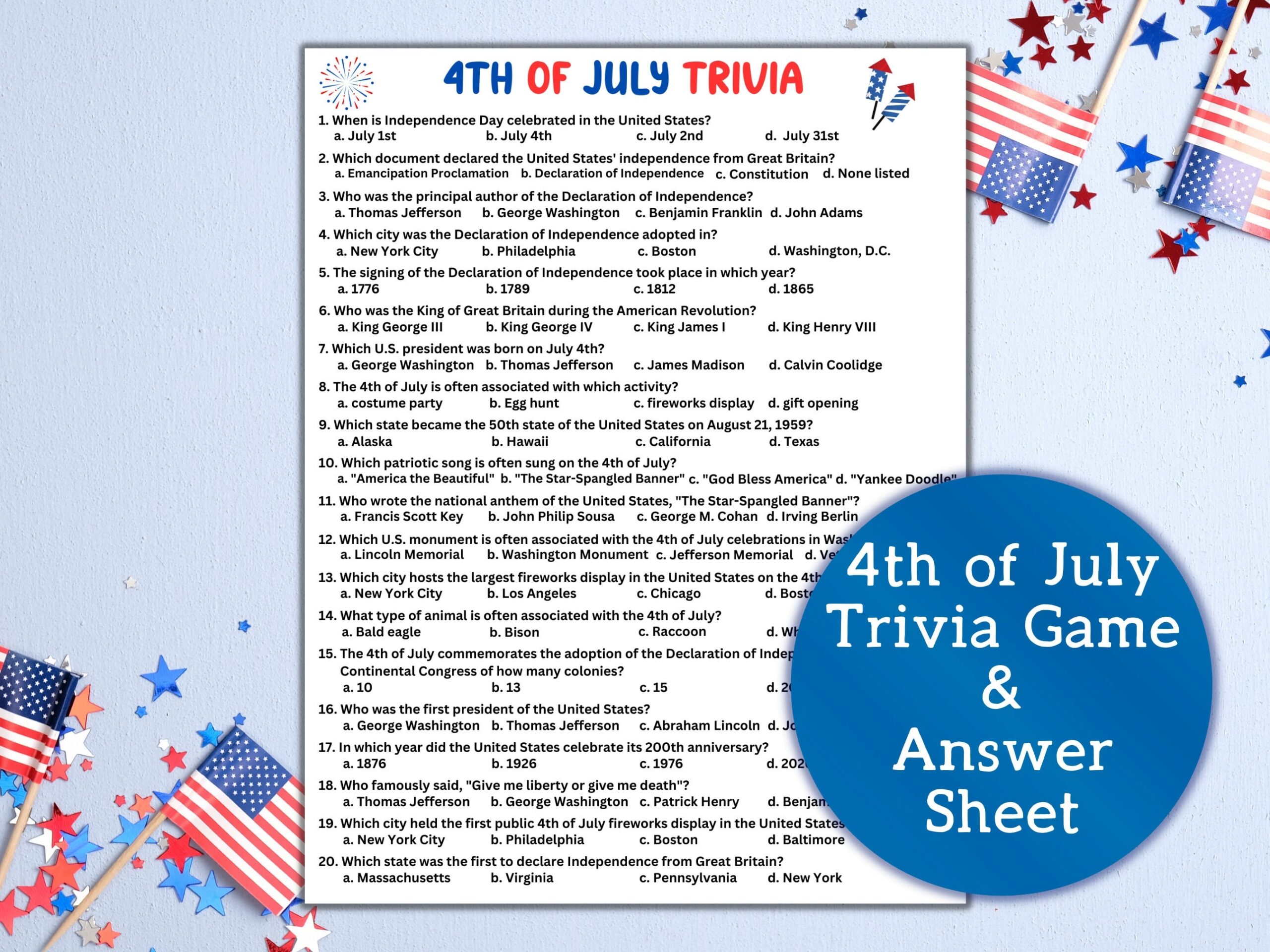 Free Printable 4th Of July USA Independence Day Trivia Quiz