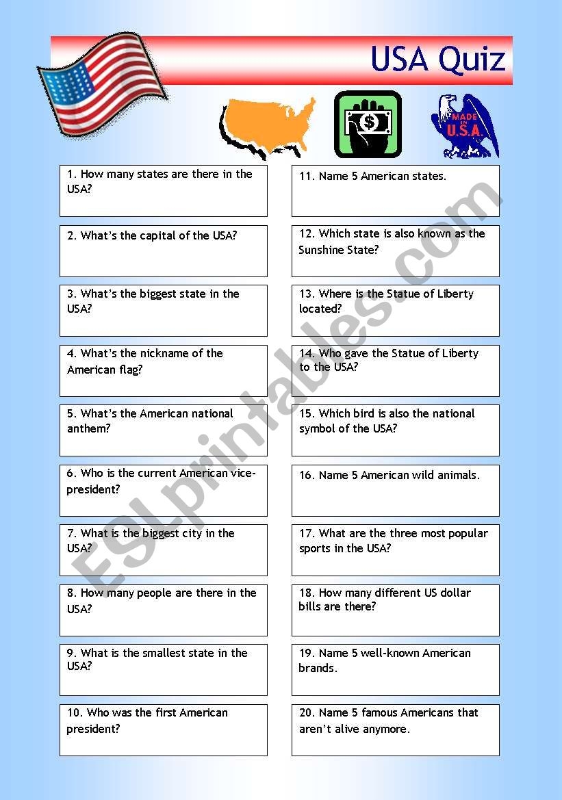 Quiz USA Trivia ESL Worksheet By PhilipR