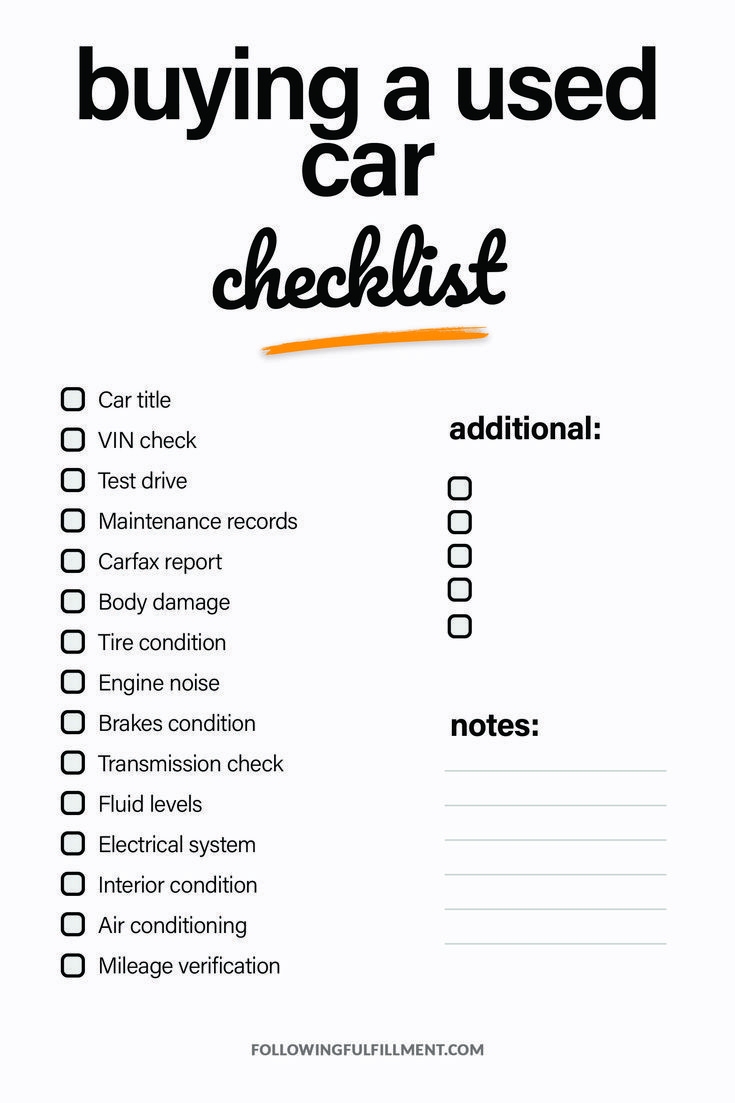 Used Car Buying Checklist Printable Template