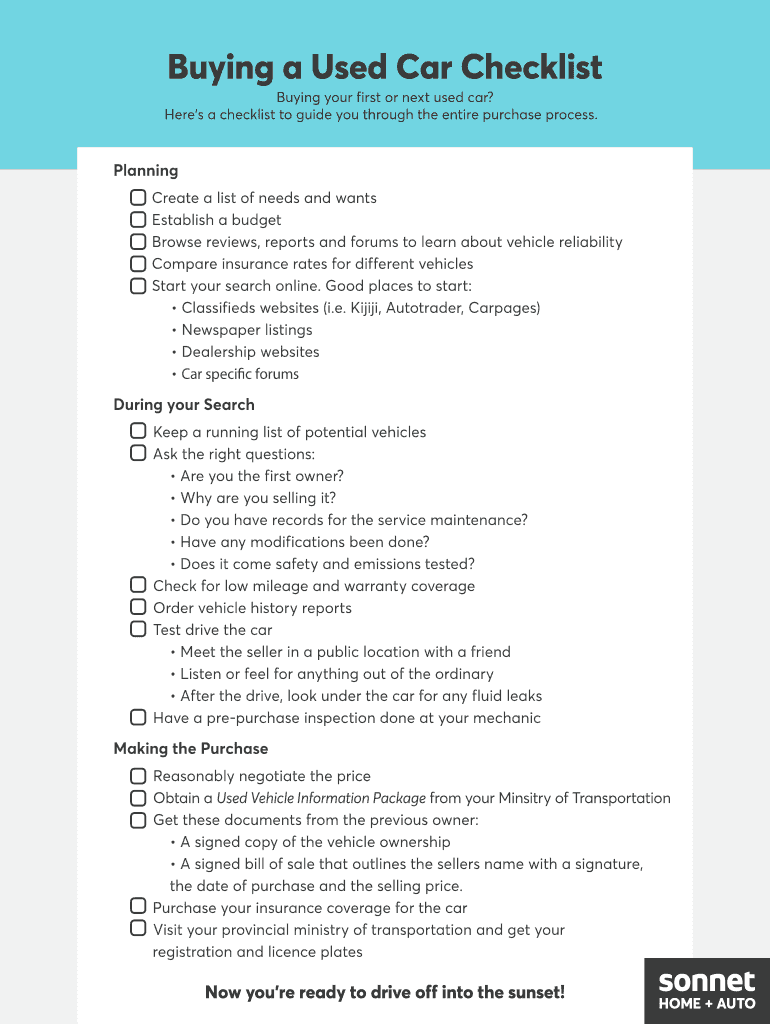 Used Car Checklist Fill Online Printable Fillable Blank PdfFiller