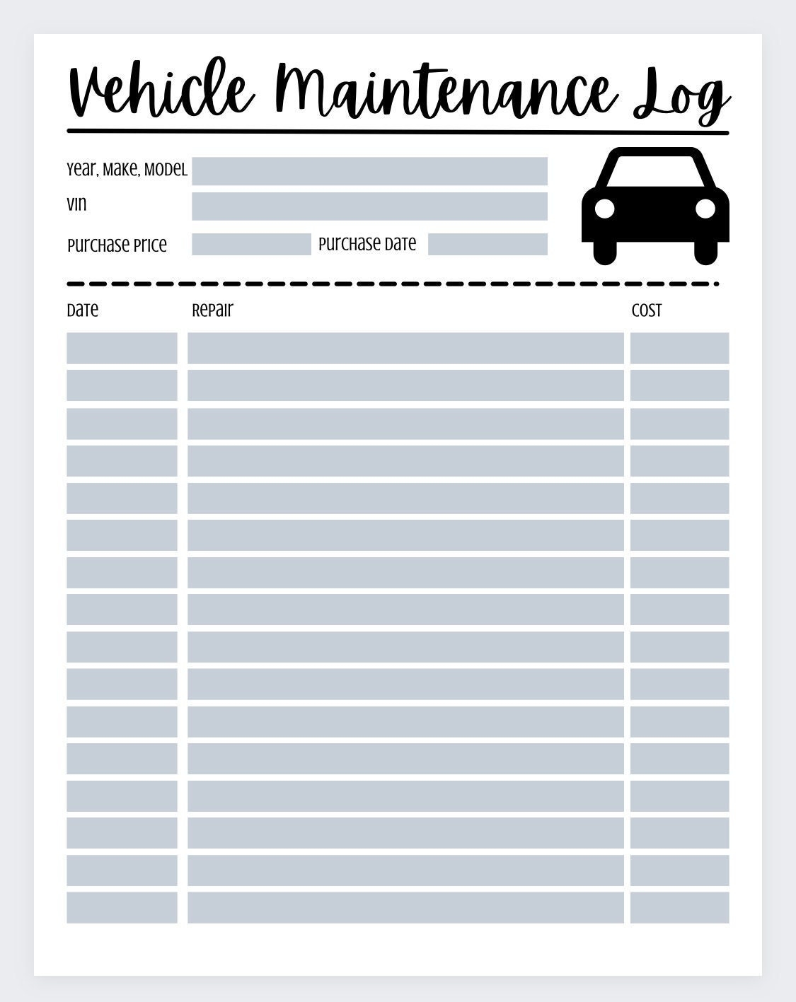 Vehicle Maintenance Log Free Printable Printable Party Favors