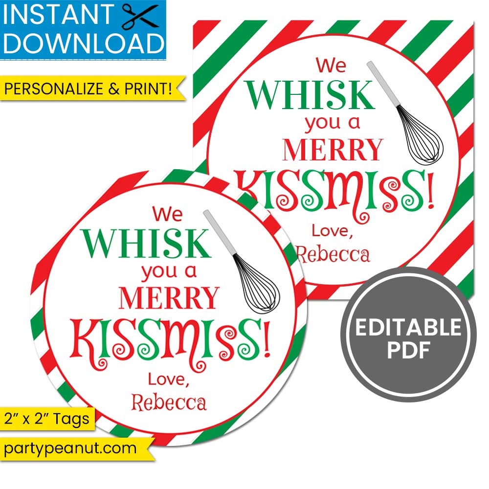 Editable I Whisk You A Merry Kissmas Tag Christmas Printable Tags diy Christmas Tags i Whisk You A Merry Christmas digital Gift Tags Etsy