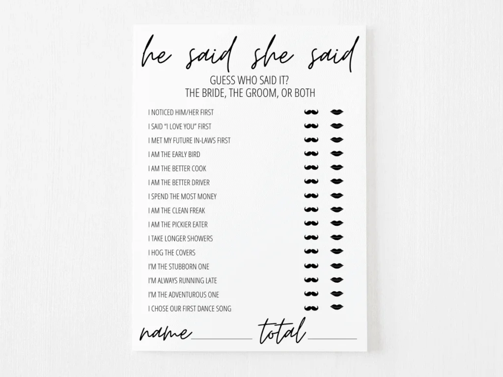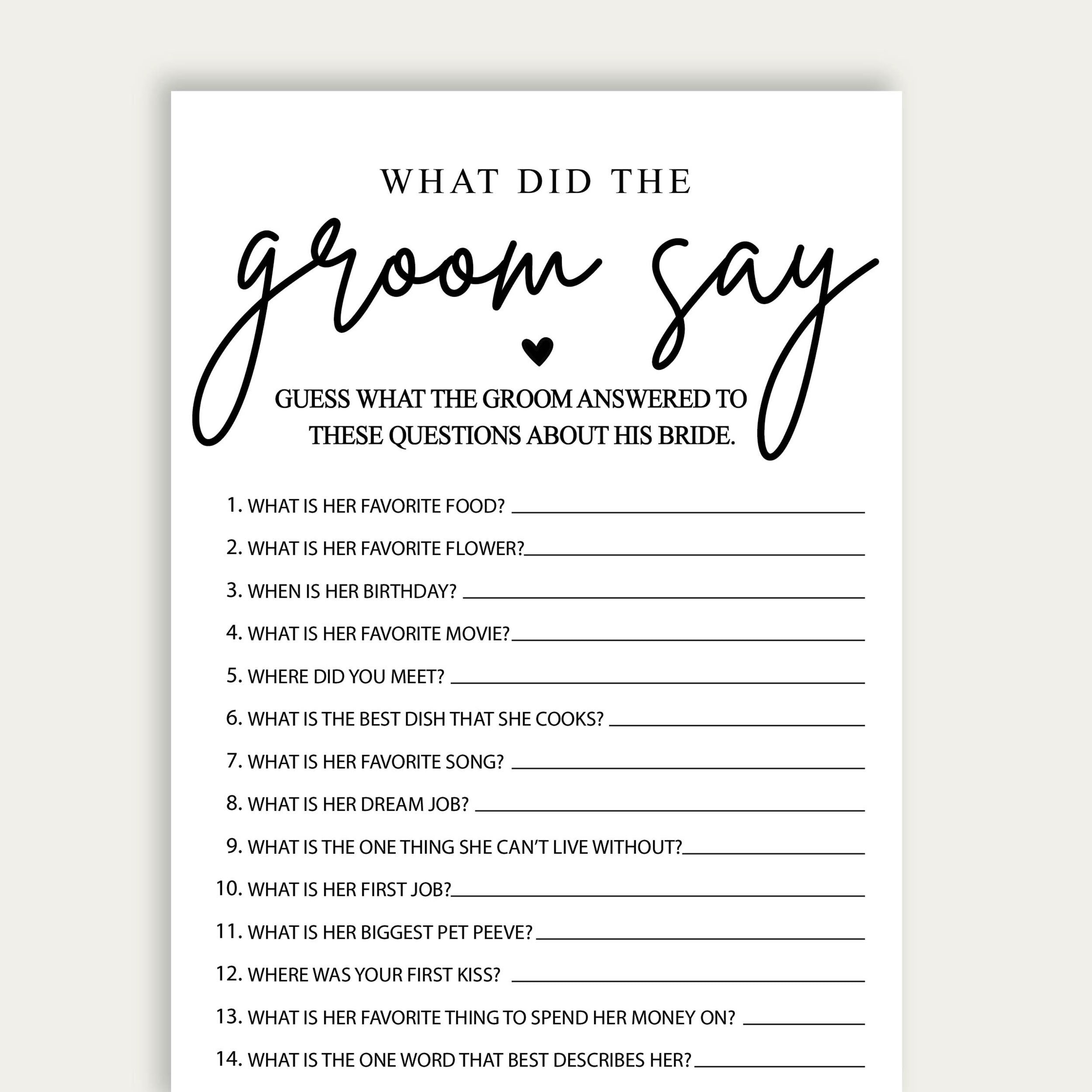 Bridal Shower Games Minimalist Wedding Shower Game Printable Bridal Shower Games Bride Or Groom Game What Did The Groom Say Game Etsy UK