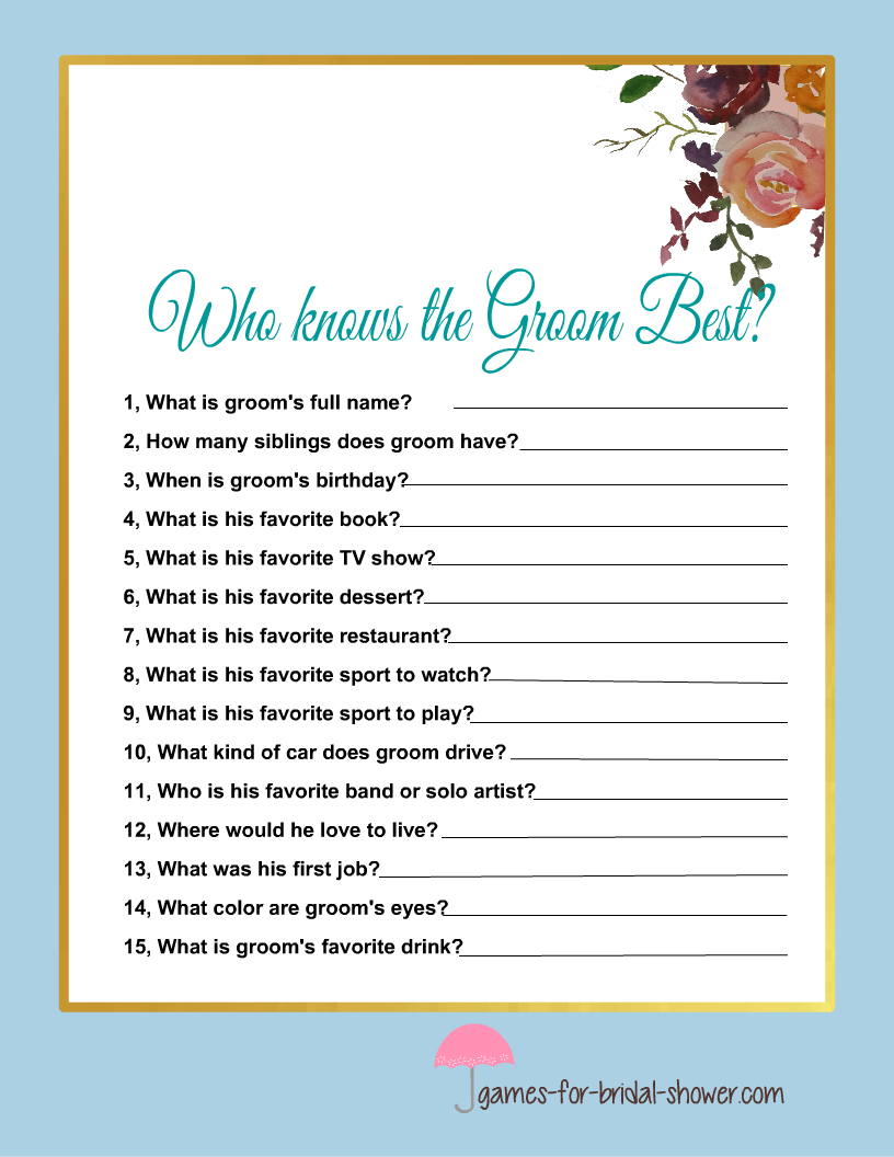 Who Knows The Groom Best Free Printable Bridal Shower Game