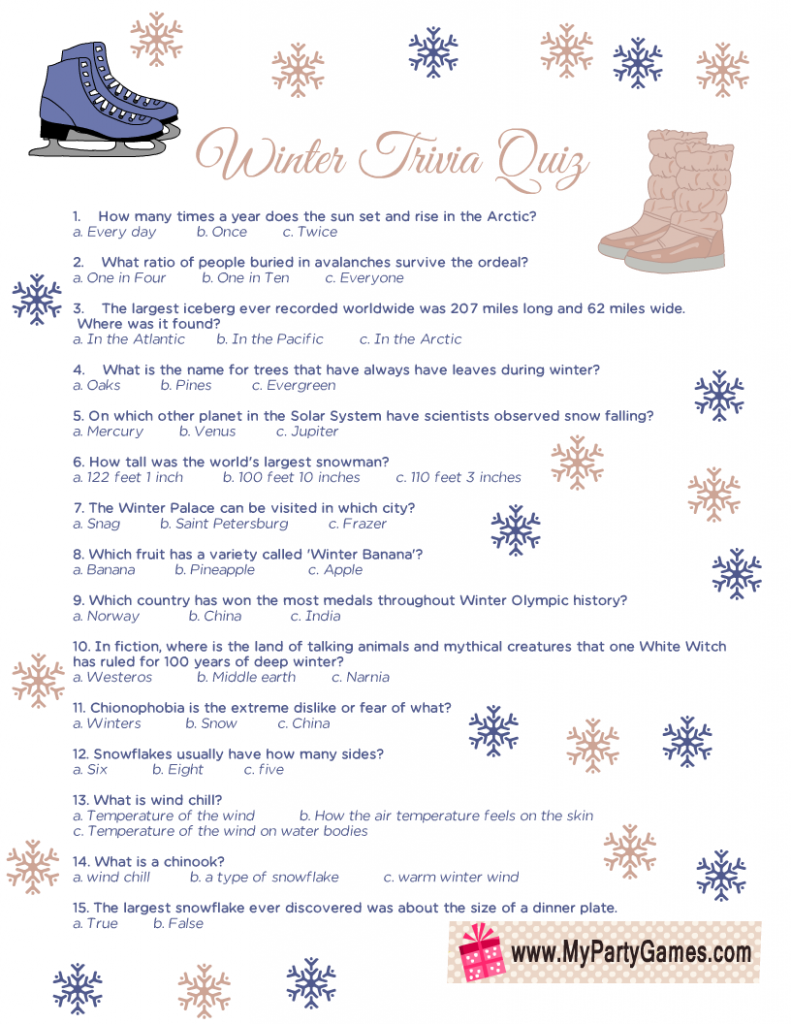 WINTER TRIVIA WINTER TRIVIA FOR KIDS TRIVIA QUESTIONS AND ANSWERS TRIVIA PRINTABLES