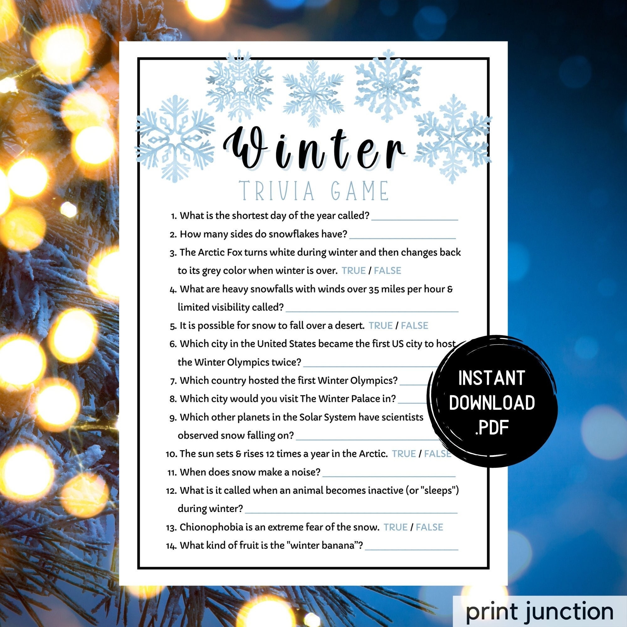 Winter Trivia Game Printable Winter Games Wintertime Activities Fun Winter Games Holiday Trivia Christmas Trivia Instant Download Etsy