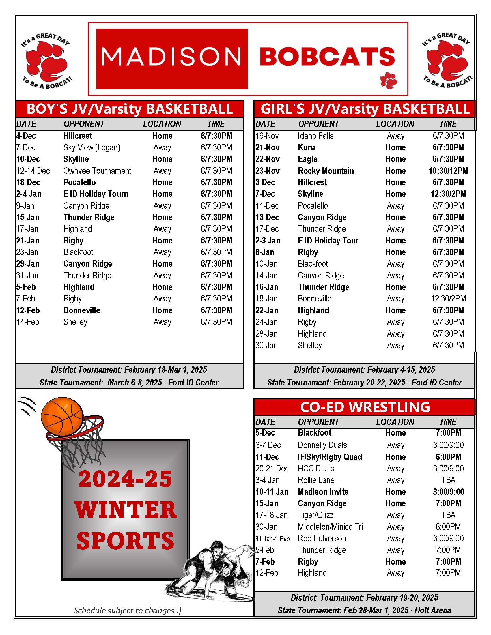2024 25 MHS Sports Schedules Madison High School