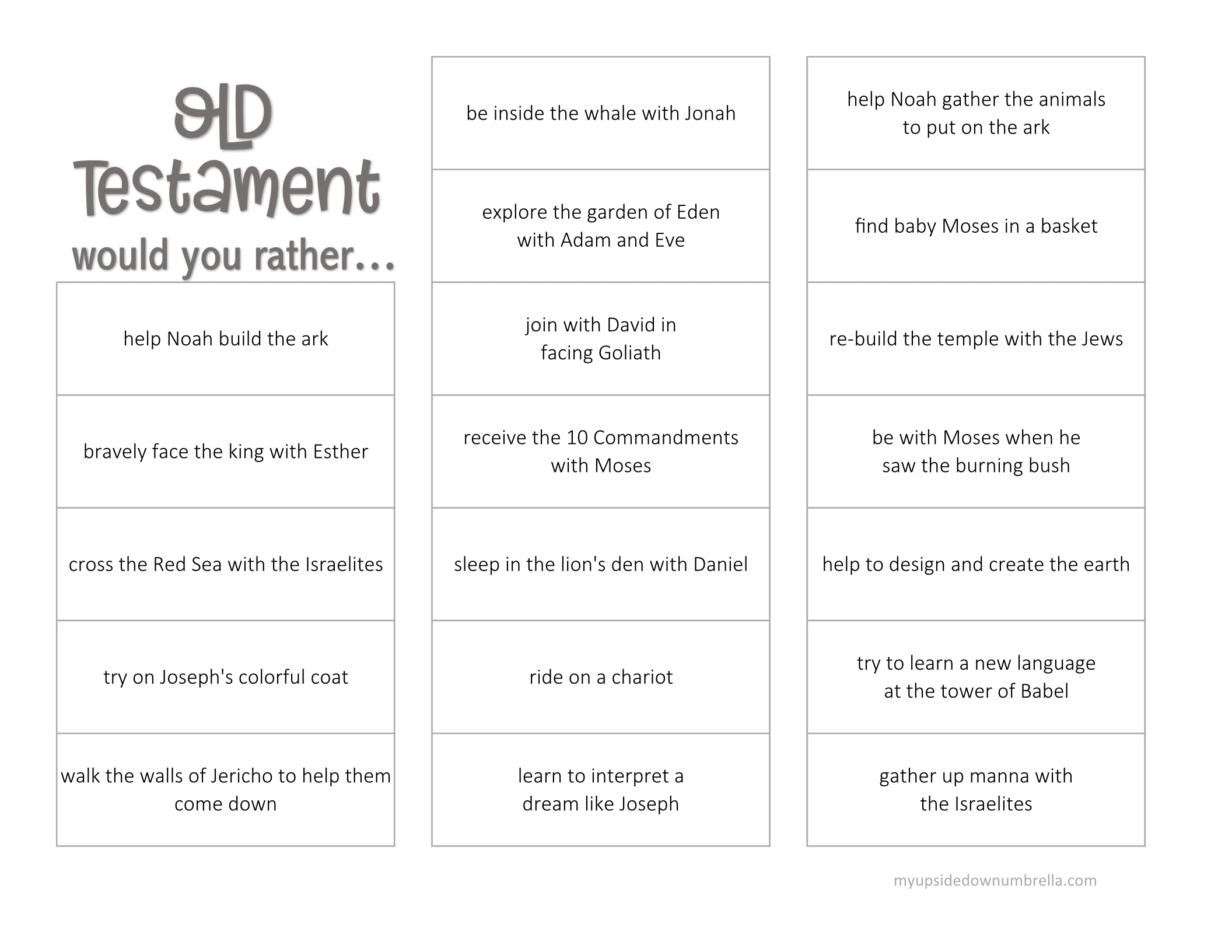 Old Testament Would You Rather My Upside Down Umbrella